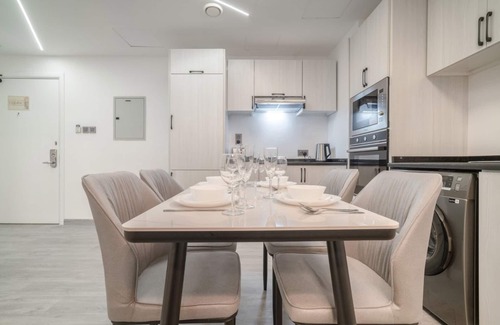 The apartment features 3 well-appointed bedrooms, each with its own private bathroom. All bedrooms come with comfortable beds, premium linens, and ample storage space for your belongings. The bathrooms are modern and stylishly designed, featuring high-quality fixtures and fittings.