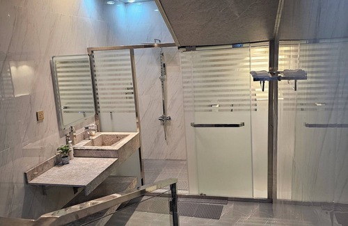 The “ANUSHTHAN VILLA”, name itself signifies the purpose of the facility. This villa is finely crafted keeping strict compliance to ancient Indian VASTU principles along with ultramodern modern interiors, to maximize the comforts of the guests. The villa exterior is surrounded with lush green trees with, inhouse flow fountains, green grass carpets with 360 deg. ambient lightings, to create an electrifying atmosphere. It contains in-house event and party hall with panoramic sky view celling, professional surround sound music system, multi-channel sound mixer, microphones & background LED screen. It’s ideal for a short-term corporate stay, meet & greet, product launch events, birthday parties, engagement, pre-wedding events, religious or festive gatherings etc.Experience Ajman like a local in this 5-bedroom villa. This gorgeous property boasts 5 king beds, 7 bathrooms with luxurious amenities.