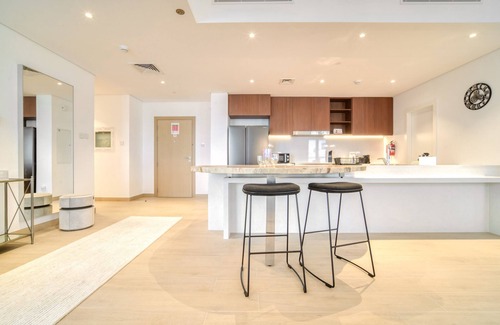 Located in Jumeirah’s beachside community, this 4-bedroom holiday penthouse is perched on La Mer’s prime waterfront development, boasting exotic views of the ocean. Starting from a deliberate assortment of iconic luxury pieces to a spacious floor plan, this home is an excellent spot to live, work and play in the city. The home’s fully equipped kitchen is adjacent to a 7-seater dining area, offering the perfect at-home dining spot overlooking the views. The space represents a laid back and inviting ambience for short-term stays in Dubai. Whether you’re a solo traveler, a couple or a family the home provides all the essentials to accommodate both short term and long term stays in the city. All-inclusive bills keep your days hassle-free, while a spacious en-suite room keeps you cozy during days in. Additionally, guests can also explore Jumeirah’s endless array of entertainment venues and lifestyle outlets to their hearts content.