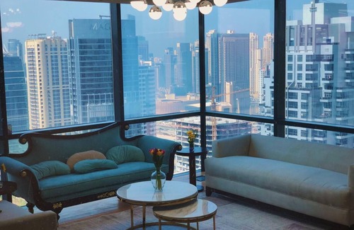 A 5 bedrooms penthouse plus maid's plus study room. The penthouse is luxury furnished and has a private swimming pool.