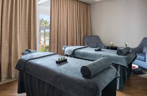 Located in Al Aqah, Address beach resort fujairah apartment is air-conditioned and offers free WiFi, a restaurant and access to a garden with a year-round outdoor pool. This beachfront property features access to a balcony and free private parking. This apartment has 3 bedrooms, 4 bathrooms, bed linen, towels, a flat-screen TV with satellite channels, a dining area, a fully equipped kitchen, and a patio with sea views. Arabic is spoken by the staff at the reception and English. This apartment provides a children's playground, a private beach area and a terrace. Address beach resort fujairah apartment is 1.1 km from Al Aqah Public Beach, and 1.6 km from the sandy beach. The nearest airport is Ras Al Khaimah International Airport, 45 km away