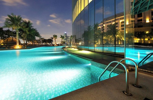 Features indoor and outdoor swimming pools, jacuzzi, sauna, steam room, and full-service spa.