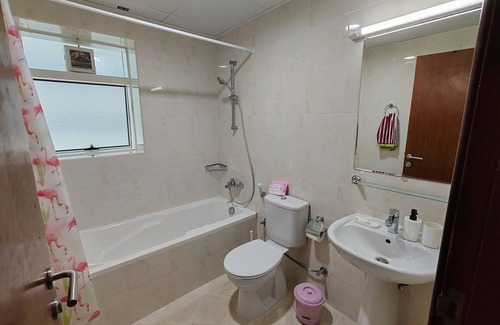Stay in our brand-new 100 sqm apartment in a quiet, modern building. Enjoy stunning views, family-friendly comfort, and high-speed Wi-Fi. Walk to shops, pharmacies, salons, and restaurants. Free parking with direct access to Dubai from our lot. The apartment features a fully equipped kitchen, modern bathroom, and all essentials provided. Perfect for families, couples, or business travelers looking for a peaceful and convenient stay.
