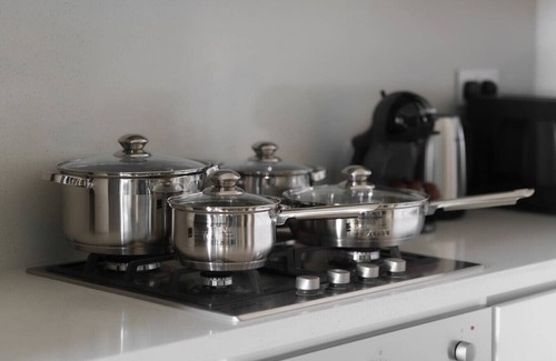 As your appetite begins to stir, drift towards the upscale kitchen, characterized by its white overhead cabinets and sleek countertops. The open layout facilitates effortless movement and flow, while the arsenal of kitchen tools, knives and cutting board allows you to chop, prep and sauté with ease. Whether you’re an experienced cook or a beginner in the kitchen, you’ll discover all the essentials to prepare breakfast, lunch, or dinner using our: