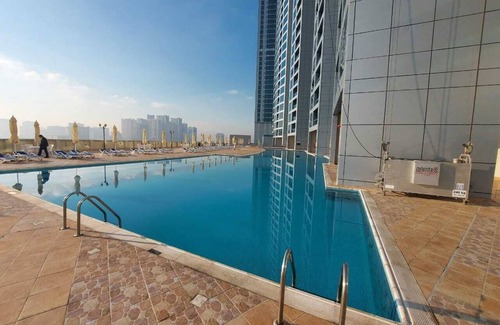 Exclusive 2 BR + 2 bathroom apartment with full sea view, with swimming pool and gym located on the top floor in the best building in Ajman Corniche by the beach. Only a few minutes walking distance to the beach, clubs, restaurants, cafes, bars, and shopping. Stunning full sea view from the entire apartment, kitchen, and balcony. Private covered parking is available. The area is perfect for all kinds of entertainment during the day and night time. Many luxury hotels are nearby. Perfect for 2 families or 2 couples or one family with kids. In the 1st bedroom kingsize bad and in the 2nd bedroom, 2 beds can be combined in one dabble. Perfect working area with office table and chair and high-speed internet.